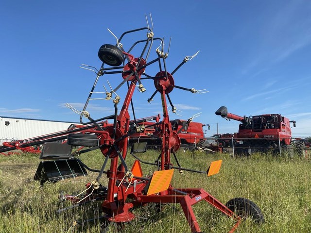 Brand new Sitrex ST780-H tedder. 6 Rotors, 6 arms Hydraulically controlled. 50HP Required 25' Working width Work tires: 16 x 6.50 – 8 Transport tires: 205/70-R15 Full Warranty